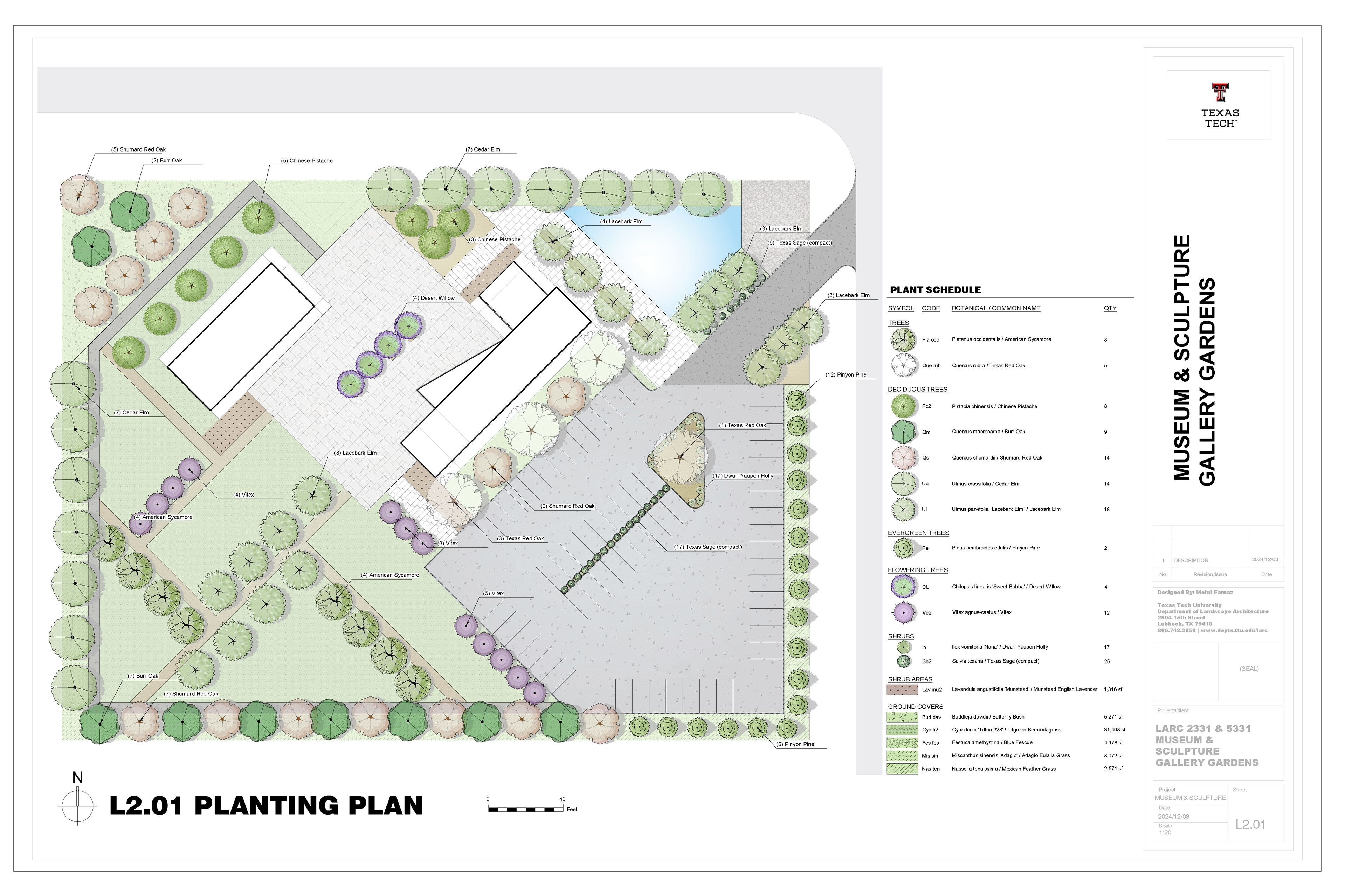 This project explored the fundamentals of site planning through the design of a museum campus. The program included a museum building, gallery space, and an outdoor sculpture garden. Using the provided building footprints, the task was to position the structures within the site and develop a coherent landscape framework that supports circulation, spatial hierarchy, and outdoor experience.